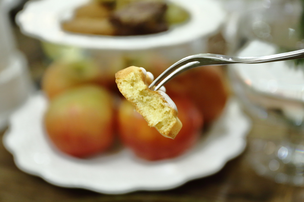 口感厚實而充滿彈性,搭配蘋果泥一起入口,鮮甜中又帶著鹹香,一整顆慢慢細嚼品嚐,真是太過癮了