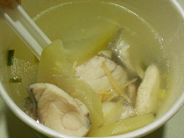 微酸切的漂亮△厚片的西瓜綿+無刺結實的海鱸片-好喝可口的鮮魚湯。