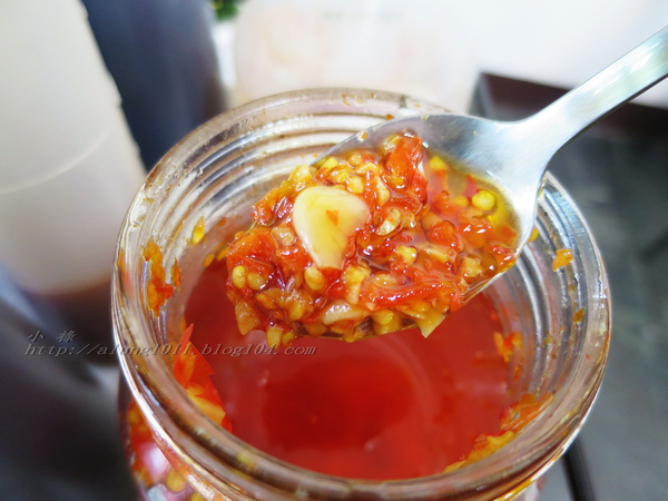 還有店家自製的朝天椒辣醬 -會辣喔!自然香醇的辣油拌有蒜瓣還真不錯!