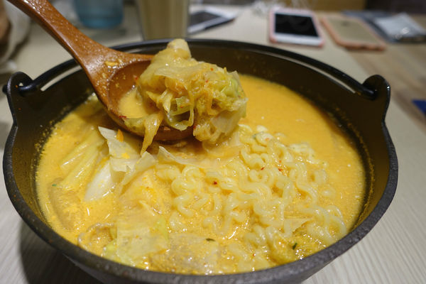 還沒吃中餐的阿B點了韓國部隊拉麵鍋($149),這也太適合消夜吃了吧!!!!