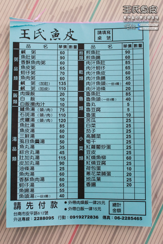 ◎王氏魚皮/菜單