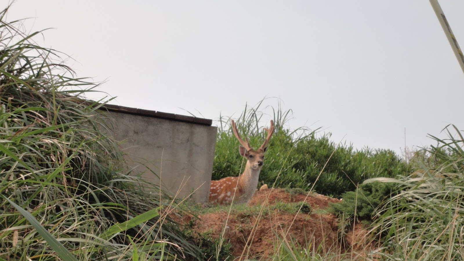 圖說:因為路過的我們太吵了,害得梅花鹿探頭起來。