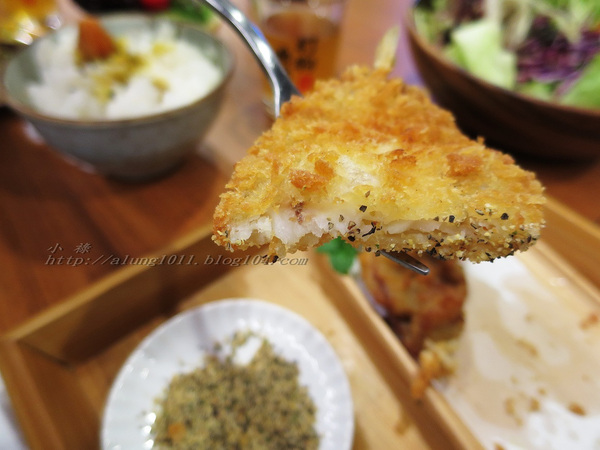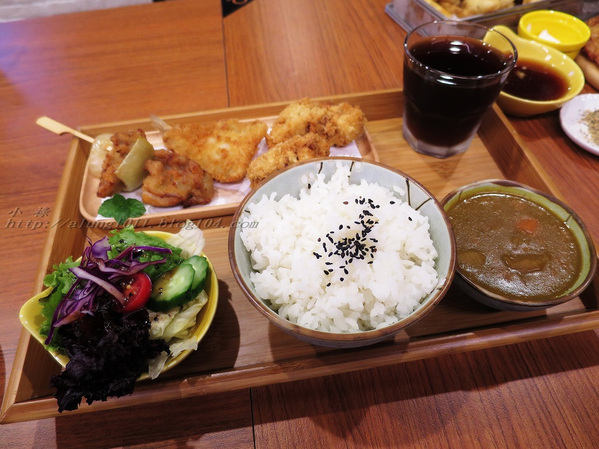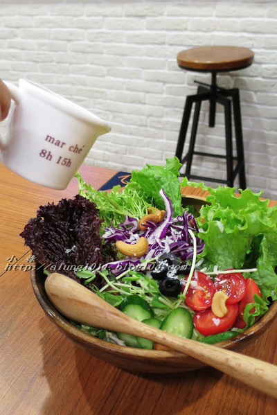 淋上油醋醬新鮮生菜沙拉,調和去油膩的健康口味;白米飯不錯吃,但個人喜歡吃稍硬一點。
