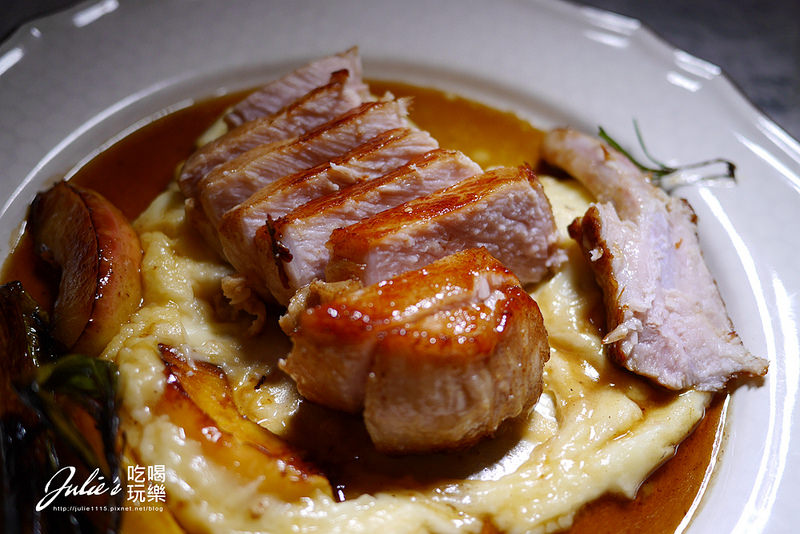 豬排的肉質很嫩,搭配的是偏甜的楓糖醬汁,下方的馬鈴薯泥非常的綿密。