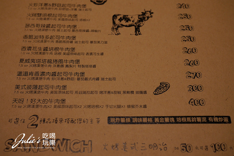 主要還是以漢堡為主,除了牛肉漢堡,也有提供雞肉或是魚肉的選擇,不吃牛的人也可以來。