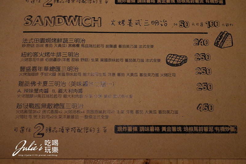除了漢堡之外,也有三明治、義大利麵、早午餐等等的選擇。