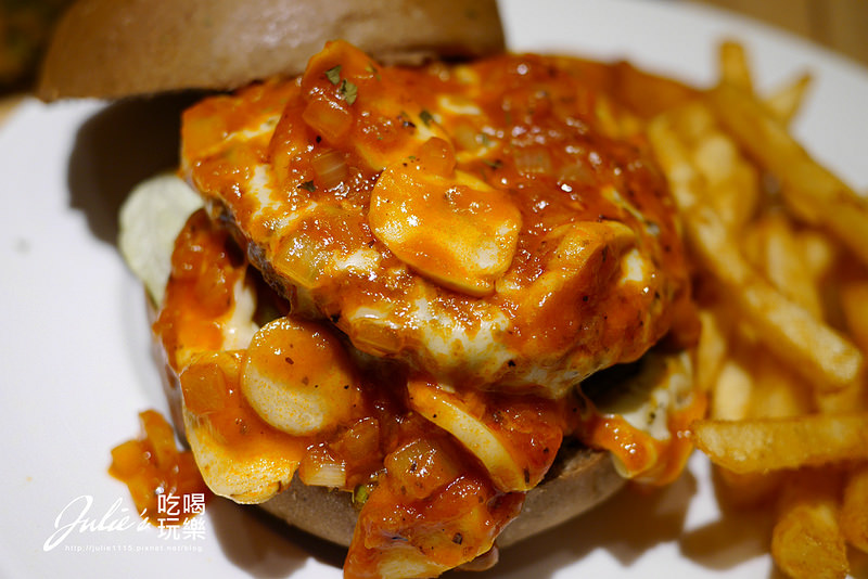 ↑雖然當天已經點了很大的三明治,但來到美式餐廳不點個漢堡好像有點奇怪,於是點了店員推薦的漢堡。