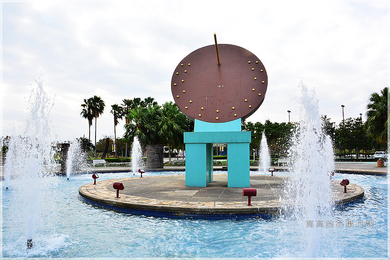 在博物館展示館正前方的太陽廣場,設有一座青銅日晷立於噴泉水池中央,