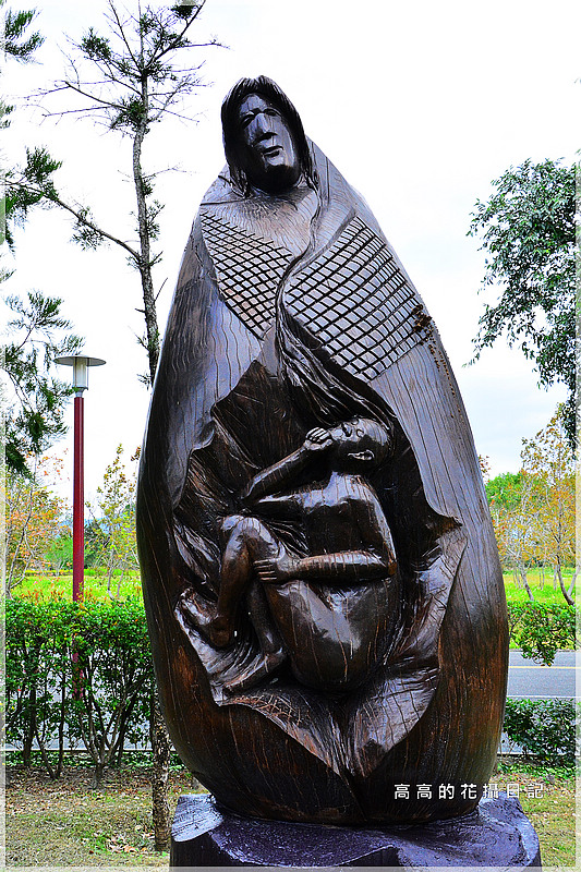 接著往館旁小徑直走,發現小徑兩旁設置了許多木雕作品,