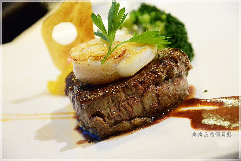 主餐『低溫烹調紐西蘭菲力牛排襯干貝 5oz』,