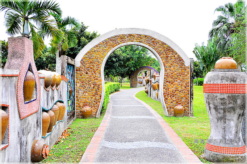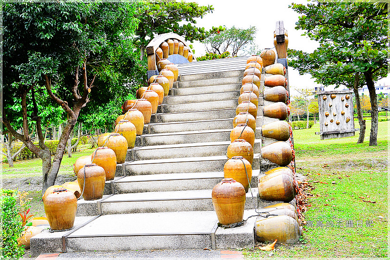 溪石步道、甕橋、景觀甕牆、風車、調色盤廣場、兒童滑梯、迷宮、