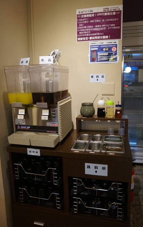 飲料免費暢飲,有柳橙與冬瓜2種口味,Hank媽喜歡2種口味加在一起喝,帶點柳橙酸度的冬瓜真的很不錯,大家不妨也來試試看吧!!