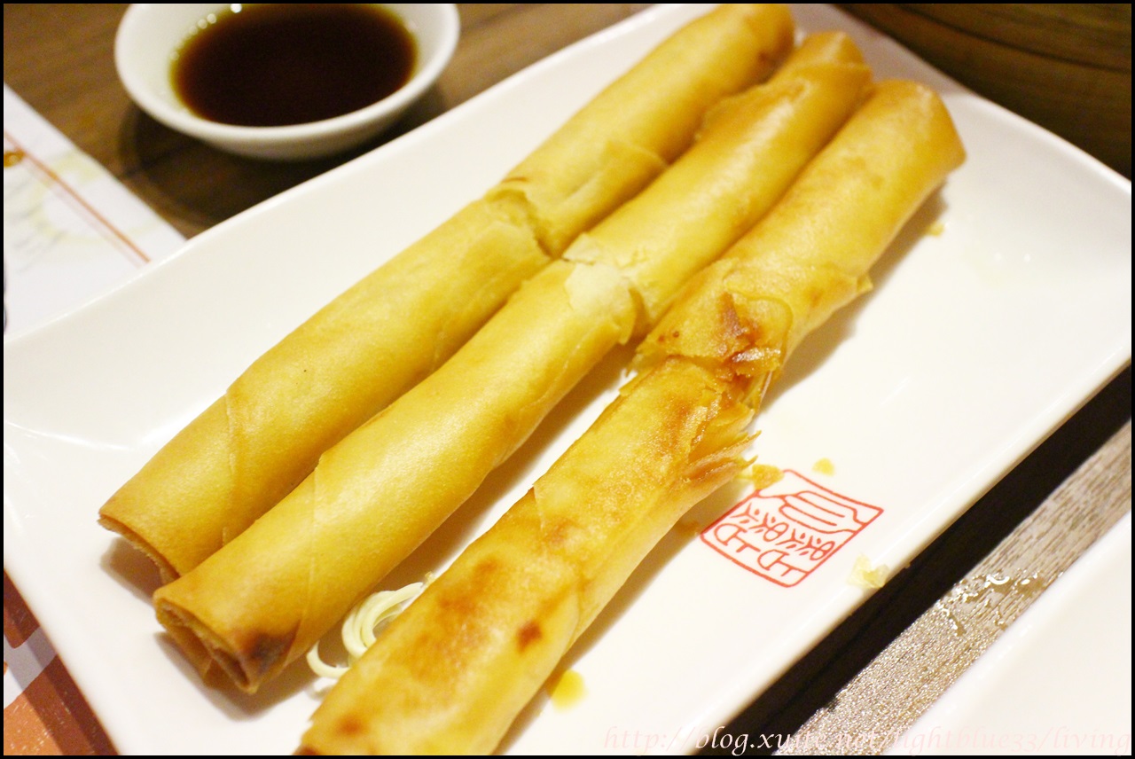 蒜香蝦春捲,樣子很細長,春捲皮炸得很酥脆又有誘人的香氣,裡頭一樣吃得到飽滿的蝦肉,不過要小心燙口