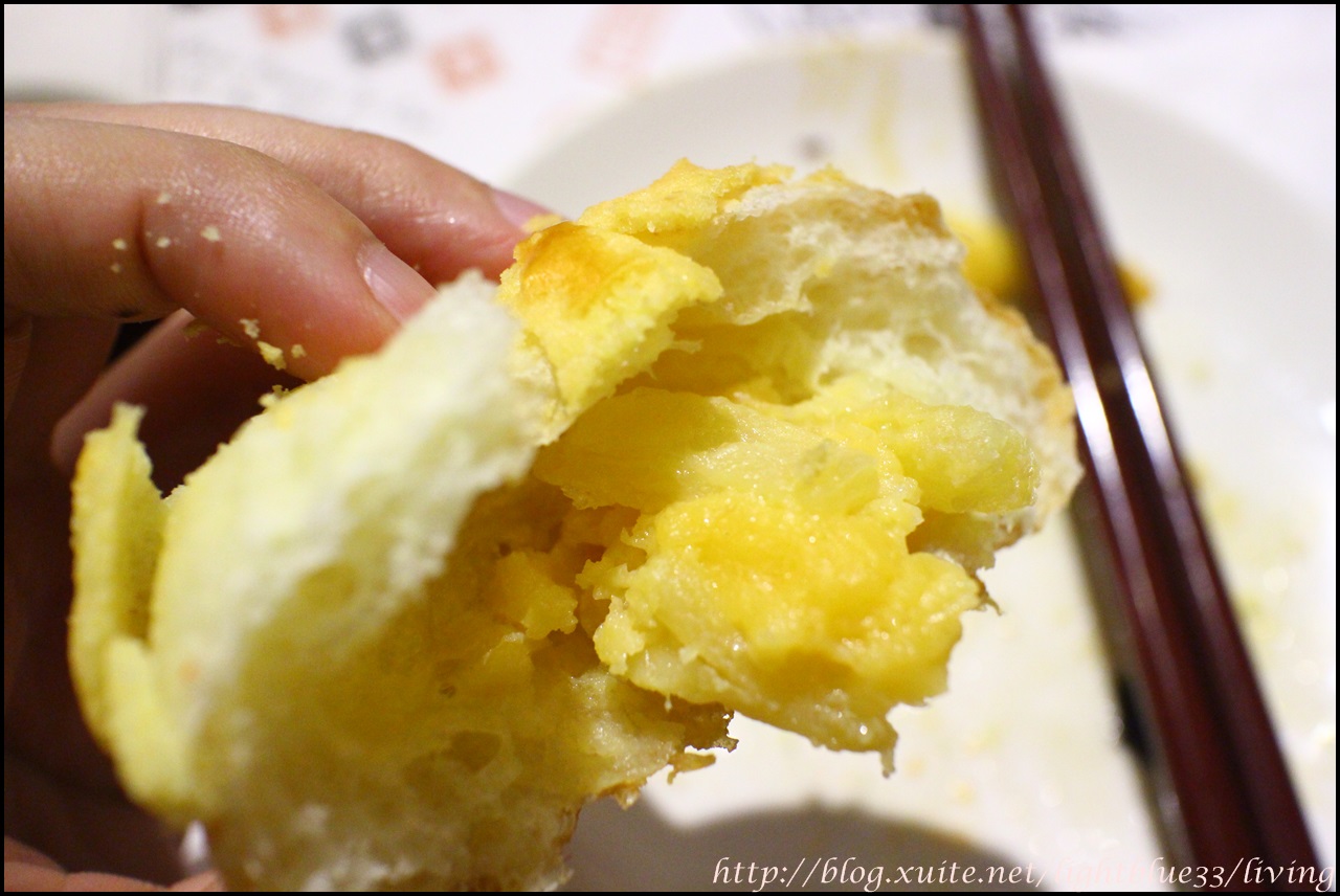 他們家老闆上康熙來了有分享過可以用筷子在豬仔的鼻孔插洞,然後用手往他屁股擠,裡頭的奶黃就會流出來,雖然我們因為要吃其他菜所以把豬仔包放了一會兒,本來擔心會不會變涼就不能玩,結果我試了一下還是可以耶,只是要小心有時候會變成從屁股爆漿XD 雖然看起來有點噁心,可是這種惡趣味實在讓人忍不住想動手玩玩看