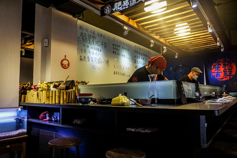店內分板前與座位區, 可惜這天板前客滿, 不然坐板前與師傅聊聊會比較開心