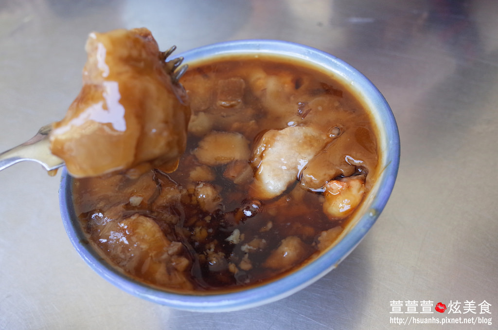吃碗粿就是要切一塊大大的,沾上醬油後一口塞進嘴裡,那種"古溜"滑順的感覺在口中是滿足!