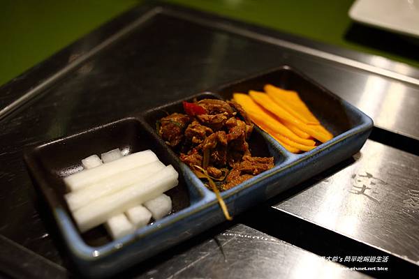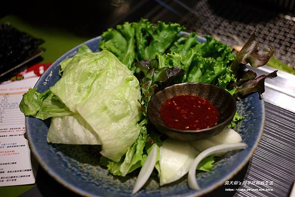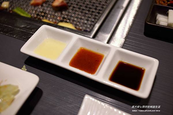 上面的醬,帶點甜味與辣味,敢吃辣的朋友,可以用肉沾一些醬