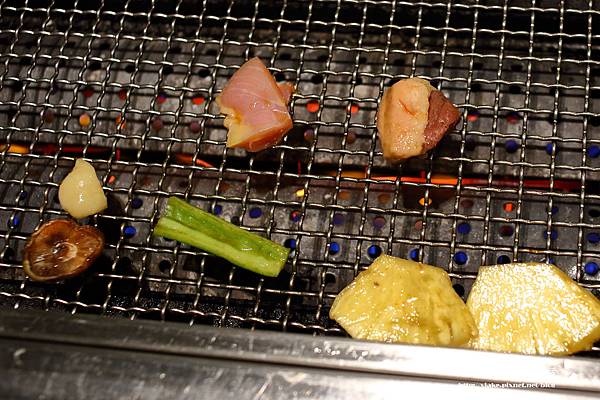 ↑蔬果類的記得放旁邊,放中間火會太大,容易烤焦喔