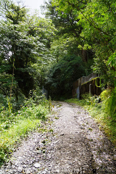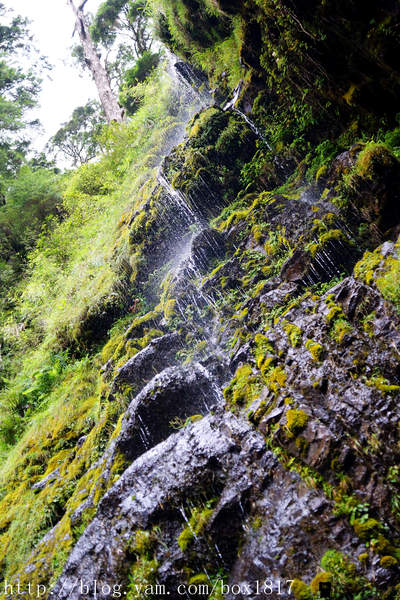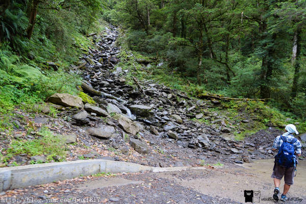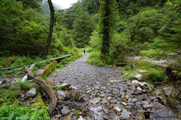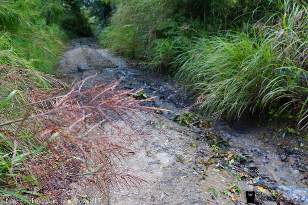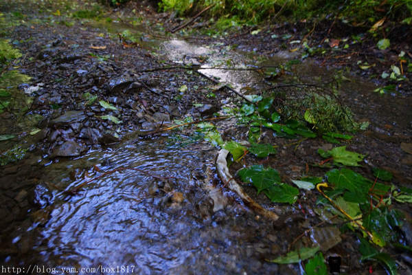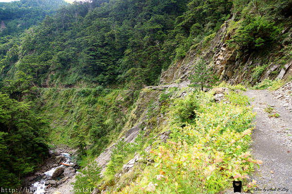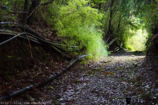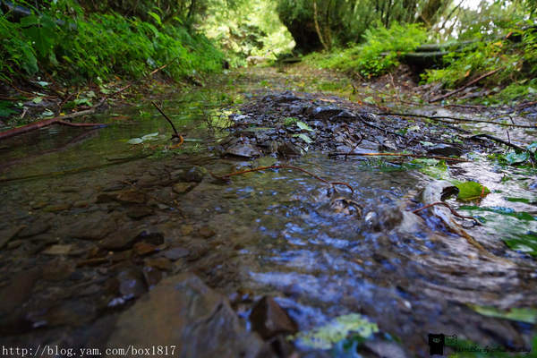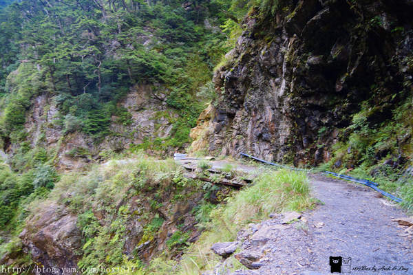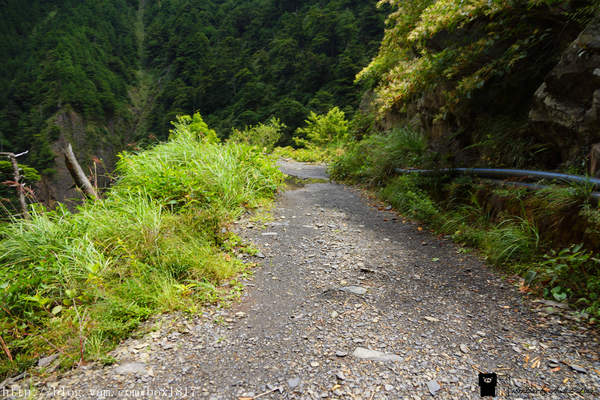 這條步道,開闢起始的原因其實是為了架設水管,好接引來自合歡溪上游的水源,沿途處處可見破裂失修的水管,不少路段都像是下雨般,陣陣水花從天而降或積成一個又一個的水漥。