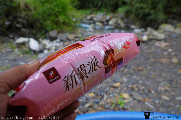 拿出甜點補充能量,高山氣壓,包裝都膨脹了,