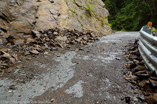 路旁偶有部份落石,道路上的落石看起來是被清理過的,