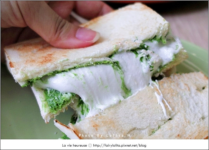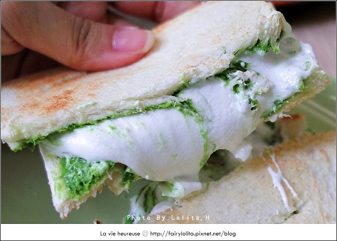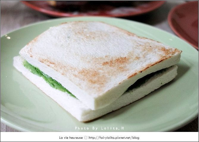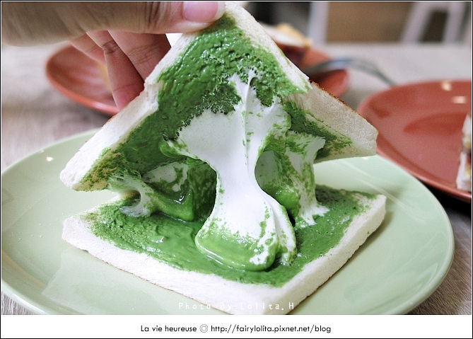 抹茶醬甜度算高,再加上綿花糖,整個是螞蟻人的最愛,對我來說有點太甜膩,抹茶味不算濃,整體組合偏向小孩子口味,私心偏好鹹口味的吐司:)