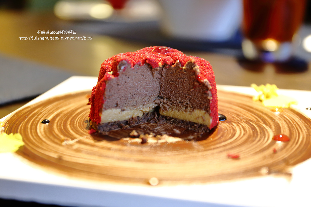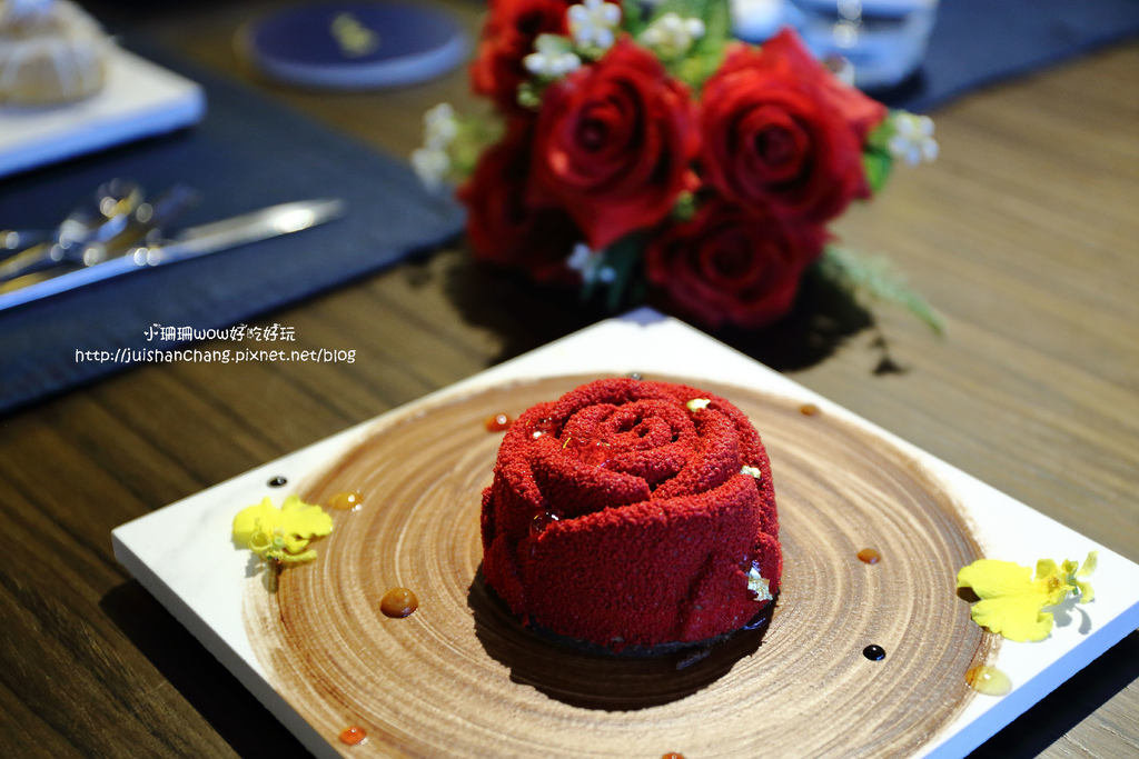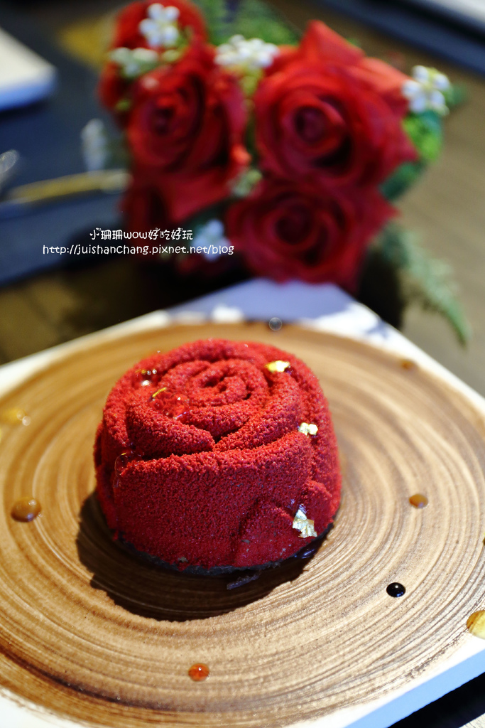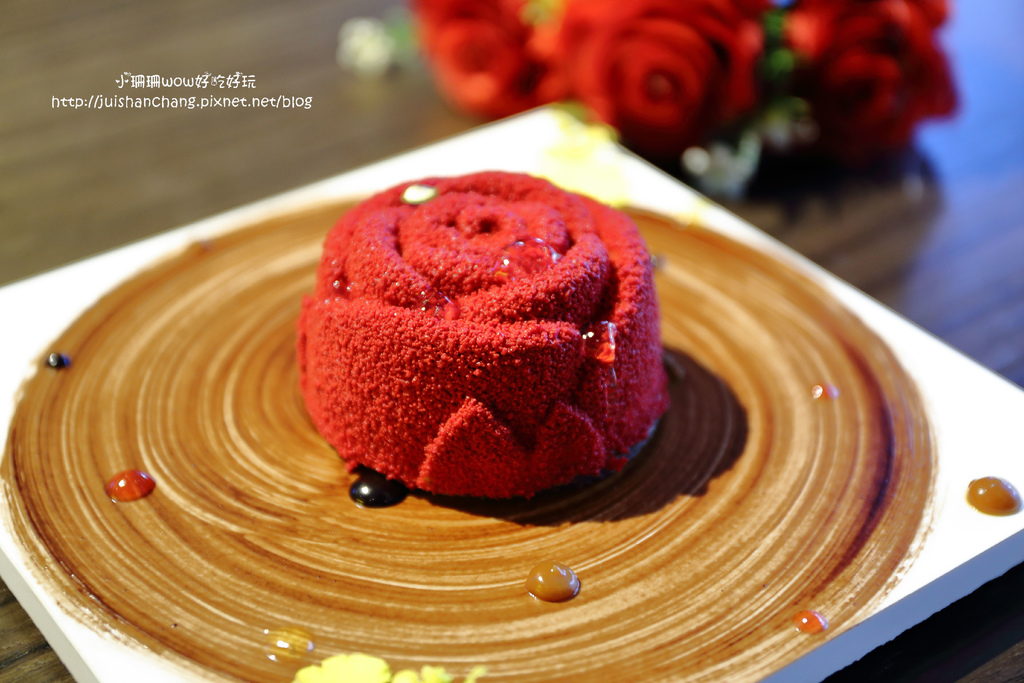 嬌豔欲滴的花朵則揉合了巧克力慕斯、威士忌奶醬,美得教人捨不得吃