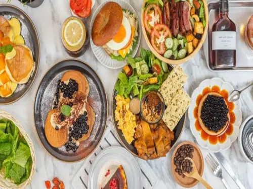 櫃枱邊冷藏櫃上層有擺了蛋糕,有需要可於點餐時點用,下層是可供開放自取結帳的沙拉,感覺上島的餐點價位有些略為偏高,不過有部份餐點有做套餐優惠可以參考看看,另外飲品部份也有提供跟銀行信用卡合作的優惠(特殊節日不適用),我們這次用國泰世華卡今年度合作優惠點了二杯咖啡,享有第二杯半價優惠.