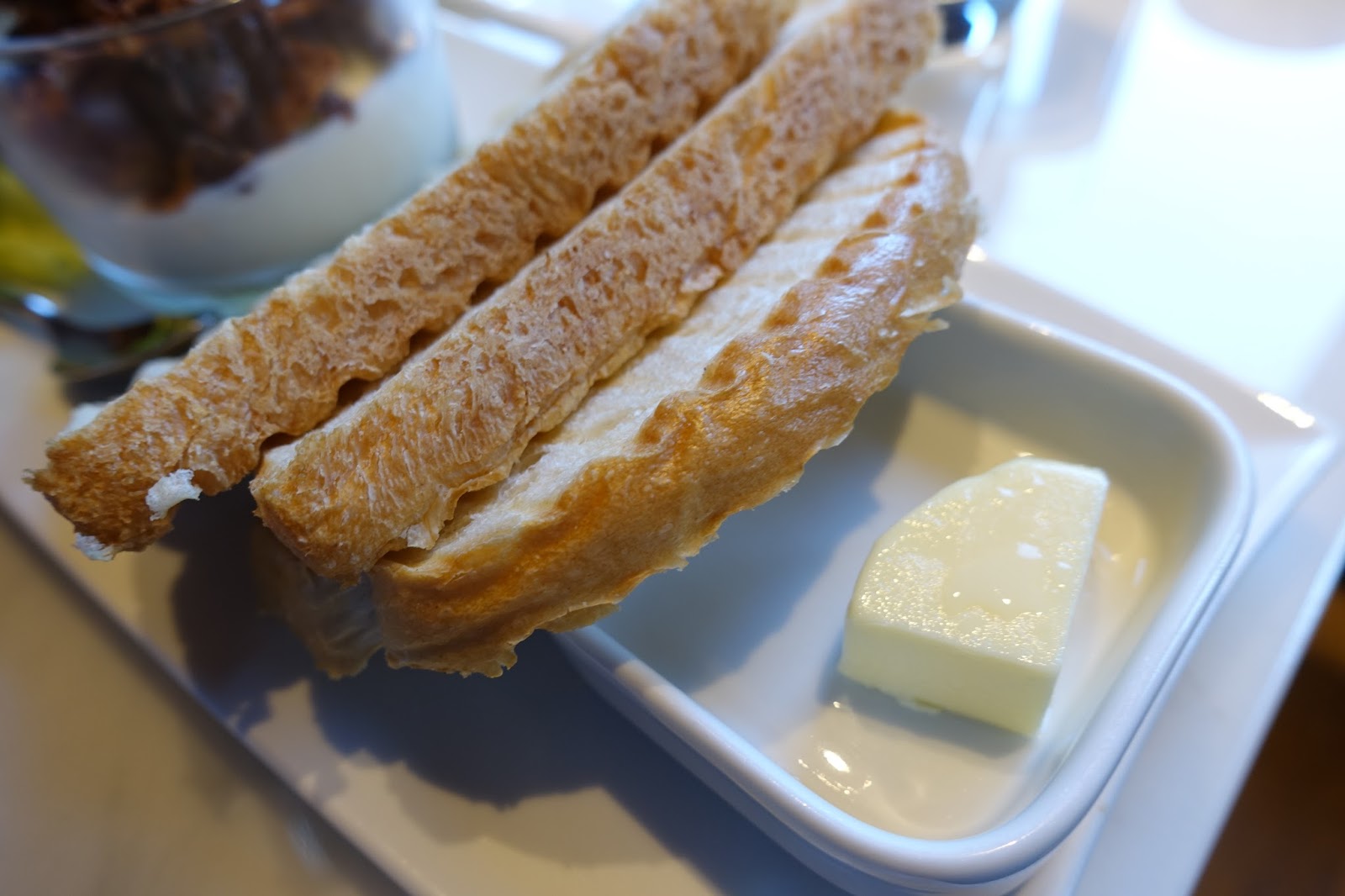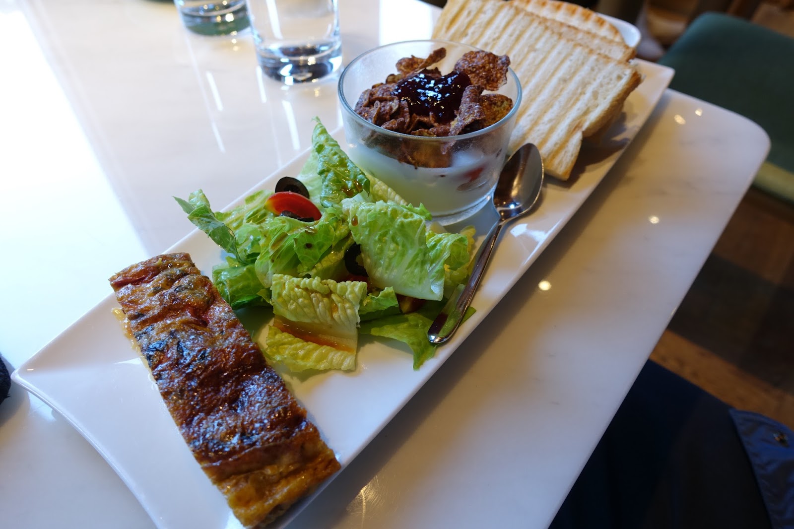 這份費塔塔的早午餐包含一份義式烘蛋、果醬優格、沙拉和烤過的吐司與奶油,吃起來相當豐盛,現場不少人點這個餐,可見其熱門程度,不少人和我一樣準時七點半進場,就為了在這度過一個悠閒的早餐時光。
