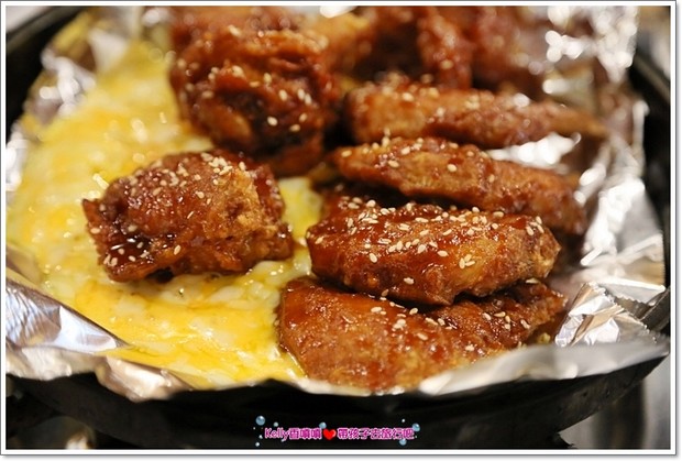 底下滿滿一大層起司,炸雞外面抹了一層甜甜OMAYA獨特的韓式醬汁,上面在撒上一些白芝麻