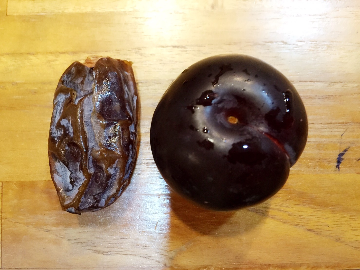 我拿出剛買的蜜李來比比看,