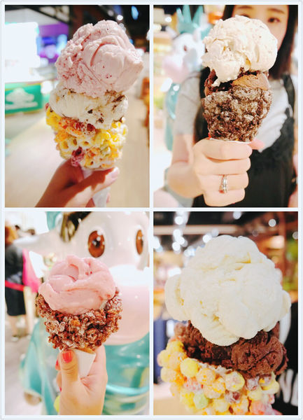 最吸睛的就是前面這兩隻彩色水果麥片的棉花糖甜筒