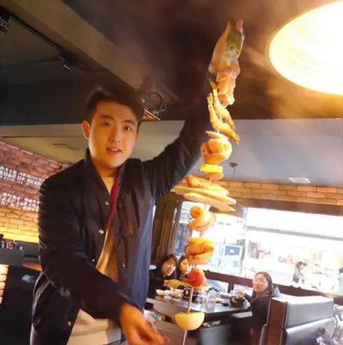 透明的玻璃櫃中能夠清清楚楚看到餐點調理的過程