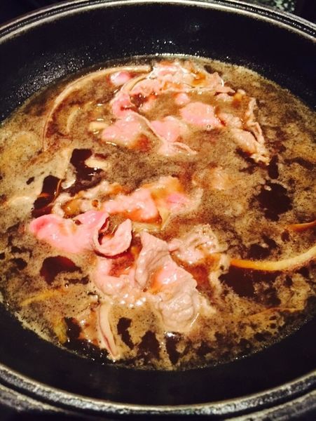在壽喜燒鍋內煮一下 非常夠味 口感也很棒
