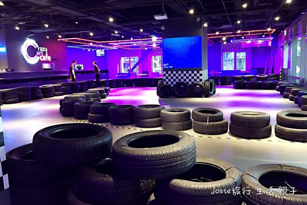 咖啡廳內竟然設置賽車道貫穿室內外,可以上場飆車甩尾一路從室內狂飆到室外,