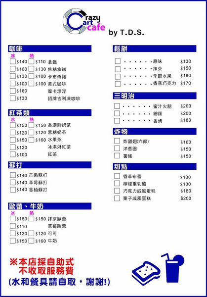FB粉絲團: https://www.facebook.com/Crazy-Cart-Cafe-by-TDS-1734679180137411