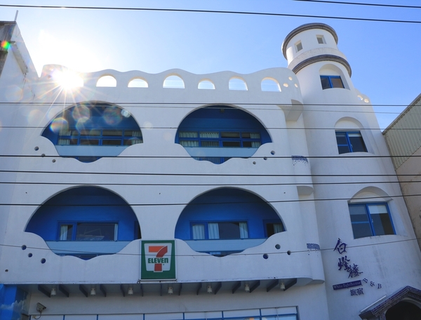看登船的時間還有剩,一行人又騎著動電噗噗逛小琉球,這是最具希臘風情的7-11。