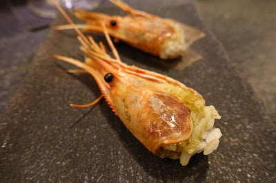 主廚為我們將生魚片中的蝦頭再次處理,蝦頭塞入白飯後再烘烤,飽富蝦味香氣的白飯滋味滿分!第一次吃到這樣的蝦頭覺得很特別!