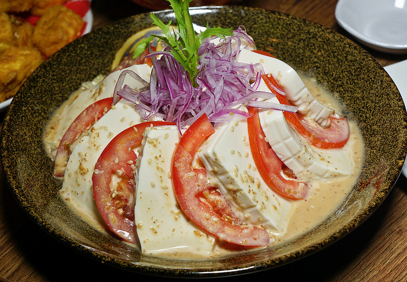 最佳吃法是豆腐與蕃茄夾在一起吃, 開胃又爽口