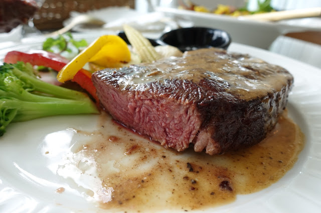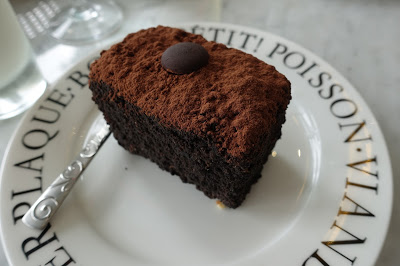 吃完大份量的排餐已經飽足,C套餐可選擇150元內的蛋糕與飲料,這裡的蛋糕甜點每個都很大,巧克力蛋糕做得很紮實,不會太甜、巧克力的香氣很足,切開裡面沒有夾奶油,而是蛋糕體與巧克力的濃郁結合。
