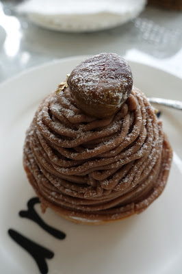 栗子蒙布朗的上面有個完整的栗子,綿密的栗子醬香氣很足,搭配著底下香酥的派皮一口吃下,兩種口感的混合,令人滿足!
