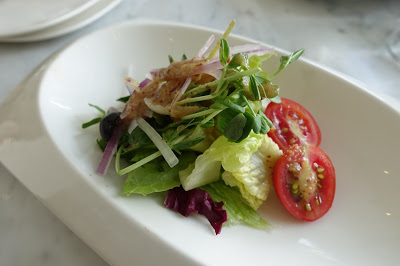 上菜的節奏很緊湊,幾乎沒有等候,每道菜接連上桌!服務生的態度也很好。新鮮的沙拉佐芥末籽調成的醬汁,口味清爽、吃得到蔬菜的鮮脆多汁!