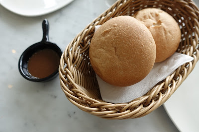 烘烤得熱呼呼的麵包新鮮上桌,搭配著一小碟橄欖油醬汁提味,喜歡清淡的我,吃原味就覺得很好吃!
