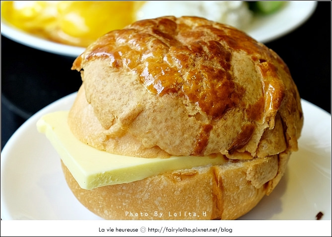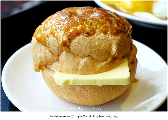 不曉得是不是因為老闆是香港人,他們家的菠蘿油感覺挺道地的,跟我之前在香港吃到的很像,菠蘿外皮超酥超脆,跟那種厚實麵包口感有一點點不太一樣,夾著因熱氣而半融的牛油簡直超犯規,啃下一口忍不住又接著一口 >///<,是不是一定要把自己逼到肥胖地步阿XD