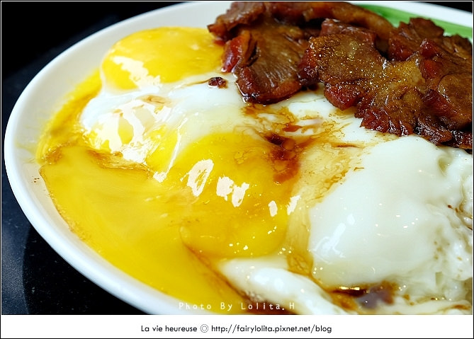 不得不說,師傳的功夫還不錯,這半熟蛋煎得可是嬌嫩的很,澄黃蛋液好似呼之欲出,但又被蛋白給巧妙Hold住,光是視覺效果就擁有把人征服的魔力囉!
