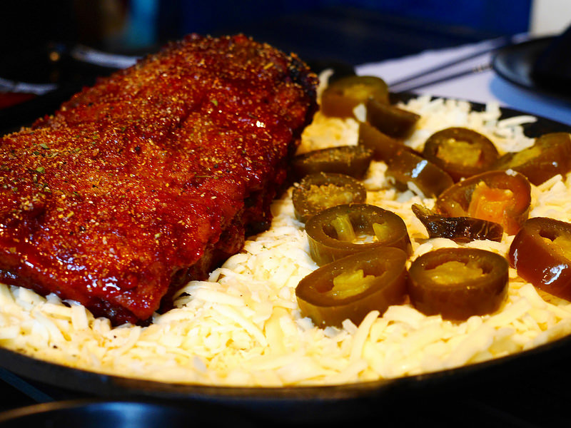 霸氣的一份豬肋排躺在鑄鐵鍋上,本來以為底下的是米飯,回來整理圖片的時候才發現原來那是起司!!!
