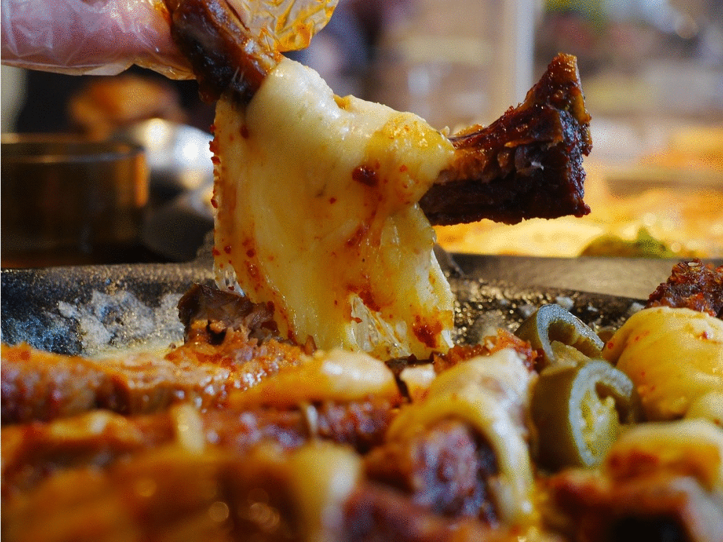 天阿可以牽超長的啦!!! 店員說「K棒韓式料理」在選擇要用哪一種起司的時候,試過了20幾種起司,經過多次失敗,好不容易才找到一種可以兼顧美味與牽絲效果的起司,有用心~推