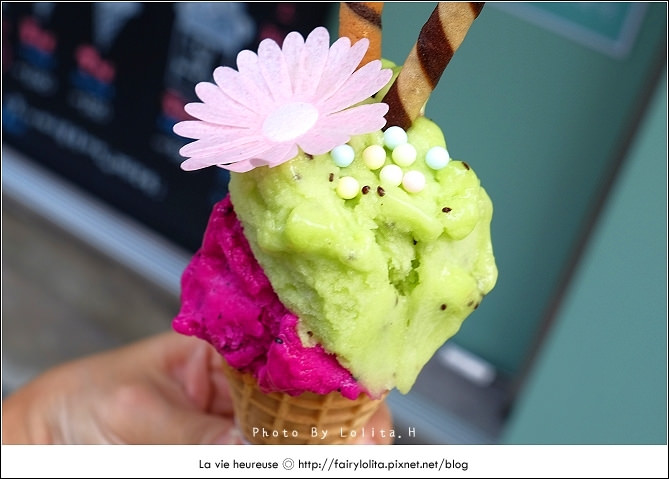 評語時間:拿著這樣一隻頂著花朵兒的冰淇淋逛街,感覺還頗能吸引目光的耶!哈哈~實在是這個散步甜食太可愛啦!完全就是Inteasram打卡獲讚的好法寶XD本身的滋味也不錯,唯獨價格有高一些囉!