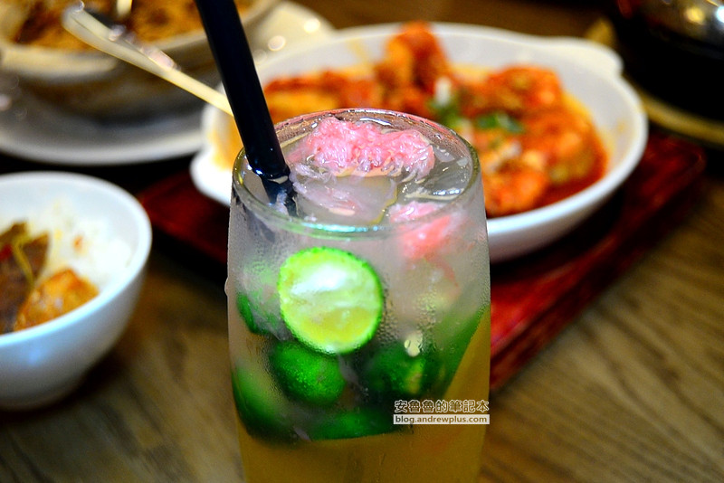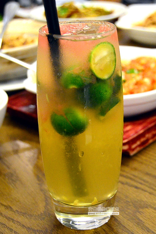 飲料一上桌終於知道爆點在哪裡,整顆檸檬切片塞到飲料裡面,檸檬切片大爆炸!!!