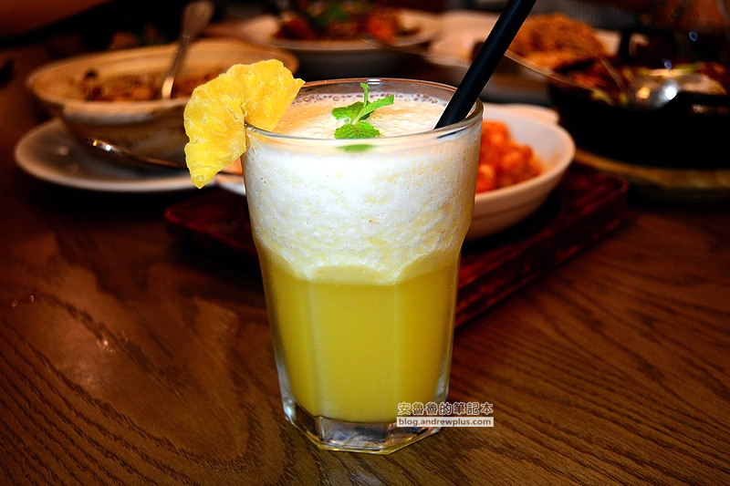 ▼喝得到鳳梨的纖維和荔枝的果肉,鳳梨的酸味和荔枝的香甜,喝起來很順口,另外還有一點點薄荷的香氣!很是清爽解膩的一杯飲品,杯緣上的果乾也很香甜!